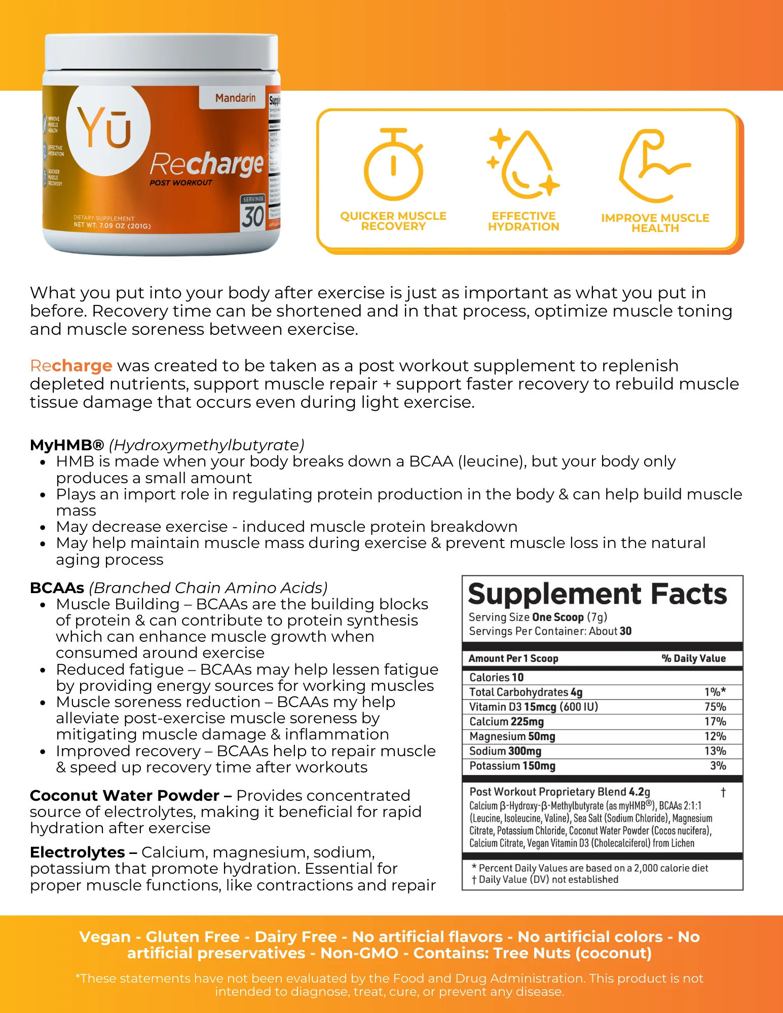 Recharge was created to be taken as a post workout supplement to replenish depleted nutrients, support muscle repair and support faster recovery to rebuild muscle tissue damage that occurs even during light exercise!